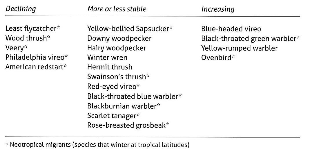 Table 1. Trends in abundances of the most common bird species breeding at Hubbard Brook, 1969-2013.